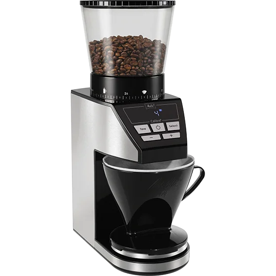 Vi har designet Calibra®, så du også kan kværne direkte i forskellige kaffemaskiner. Takket være den indbyggede tara-knap med nulstillingsfunktion og det høje udløb til formalet kaffe er det muligt og let at kværne direkte ned i et Melitta® 1x4® kaffefilter. Alternativt kan du kværne direkte ned i et portafilter.