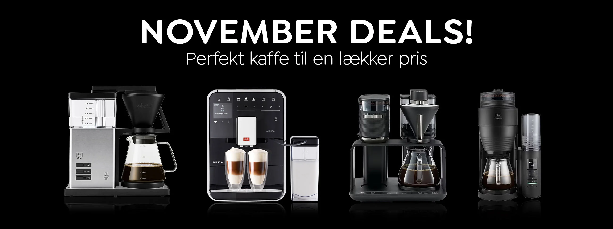 Hele måneden tilbyder vi fantastiske priser på kaffemaskiner, espressomaskiner og alt, hvad du behøver for den perfekte kaffestund derhjemme.