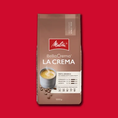 Melitta® BellaCrema® LaCrema kaffebønner har en fyldig og balanceret smag. Bønnerne er 100% Arabicabønner, og vi rister disse med kærlighed. Dette resulterer i en fyldig og blød aroma som hverken er for stærk eller svag. Med andre ord er det en perfekt mellemting som passer ekstra godt til en Caffe Crema. Melitta® BellaCrema bliver hurtigt en af dine yndlingskaffe! Ideel til helautomatiske kaffemaskiner, eller til formaling i kaffekværn til French Press eller manuel brygning.